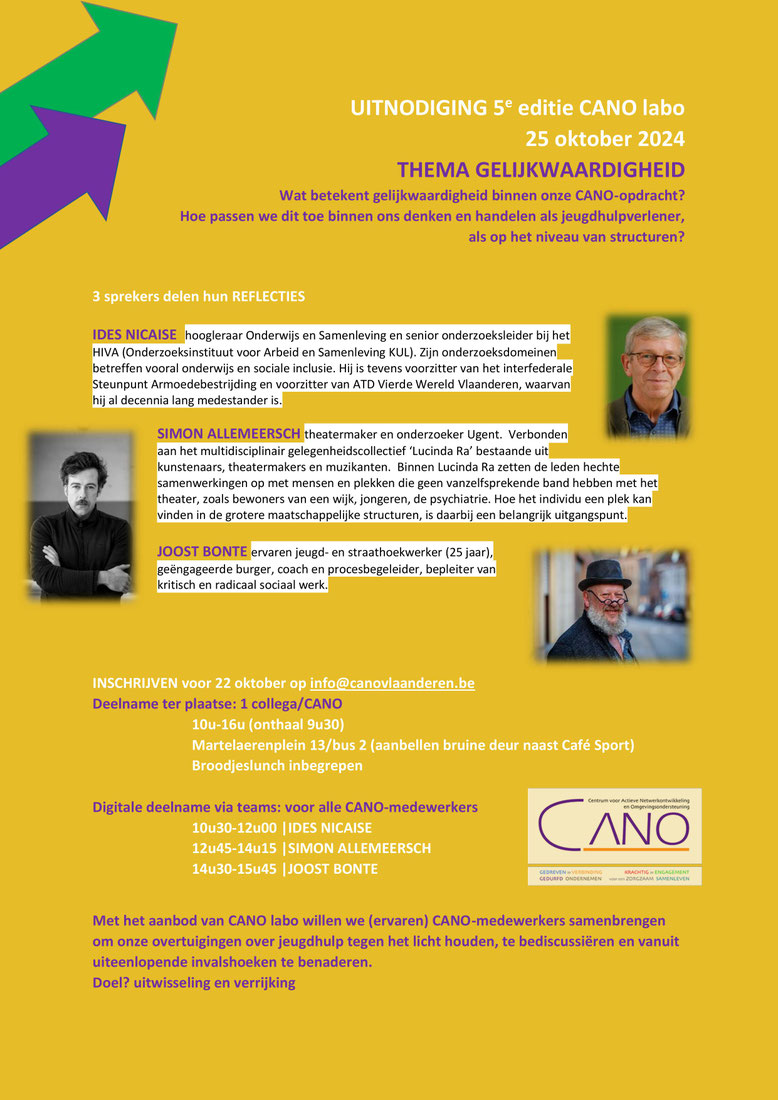 rij gaan we verder op dit (nieuwe) uitgangspunt uit het CANO-protocol (2021) dat tot doel heeft de samenleving rechtvaardiger maken. De externe studiedag 'CANO vertelt: over sociale