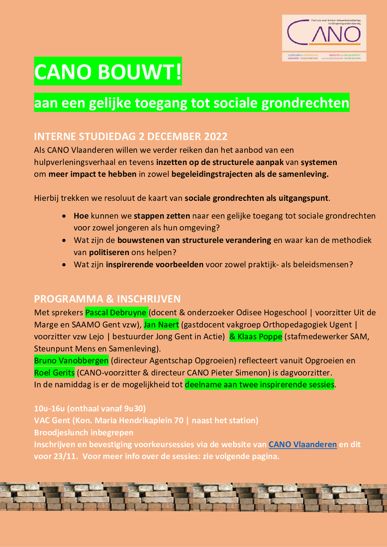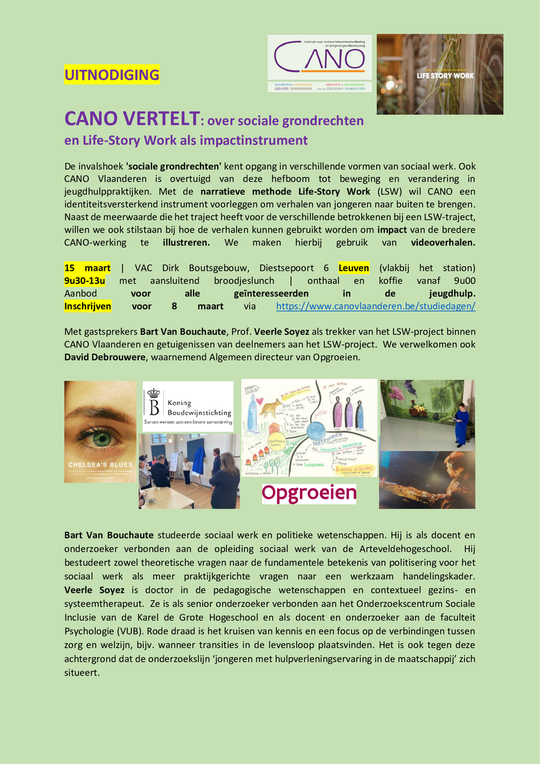 Op 15 maart 2024 vond de studievoormiddag CANO vertelt: over sociale grondrechten en Life-Story Work als impactinstrument plaats. Naslagwerk is hier terug te vinden.