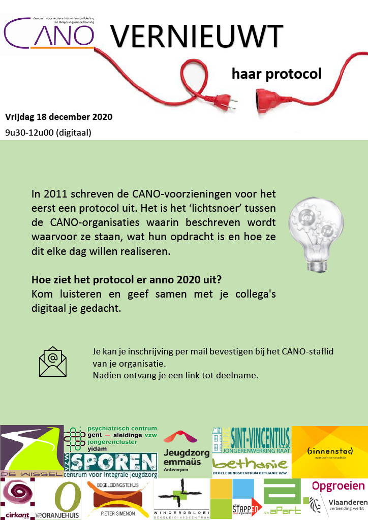 De bijzondere jeugdzorg van Vlaanderen telt momenteel 8 CANO-voorzieningen. CANO als letterwoord staat voor Centrum voor Actieve Netwerk - en Omgevingsondersteuning. Deze, van oorsprong residentiële voorzieningen, hebben reeds jarenlange expertise opgebouwd in het begeleiden van adolescenten en contexten met een complexe achtergrondproblematiek. Vanuit een herdifiniëring van de residentiële hulpverlening is CANO geëvolueerd tot een multimodaal en flexibel begeleidingsconcept. Cruciale uitgangspunten hierbij zijn dat de hulpverlening permanent vorm krijgt vanuit de dagelijkse leefomgeving van de jongeren en dat nieuwe breuken moeten vermeden worden. Het model stuurt aan op snel en efficiënt schakelen tussen ambulant, mobiel, projectmatig en residentieel begeleidingswerk in opbouw naar een geïntegreerd begeleidingstraject. In dialoog met de CANO-voorzieningen en het Agentschap Jongerenwelzijn werd de CANO-methodiek de voorbije jaren verder uitgediept tot een CANO-protocol dat voor nieuwe initiatiefnemers richtinggevend maar ook ondersteunend zal zijn. Dit protocol krijgt het statuut van kwaliteitslabel, alvast een nieuwe term binnen de Vlaamse bijzondere jeugdbijstand.